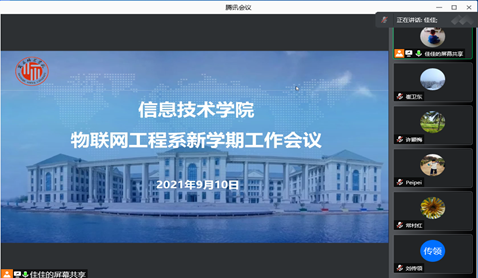 9月10日下午,万象城娱乐awc线路物联网工程系在线召开新学期工作会议,系全体教师参加会议,本次会议由副院长、物联网工程系主任刘佳主持。