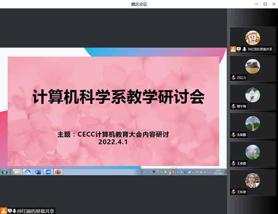 4月1日15点30分,计算机科学系采用腾讯会议平台,开展了主题为计算机教育大会的教学研讨会。3月25至26日以“新开局、新发展、新体系”为主题的第三届中国第三届计算机教育大会召开,学院组织了全体教师在线学习,以教研室为单位开展研讨座谈。系主任孙红丽主持本次研讨会,会议针对计算机教育大会内容展开了热烈讨论。