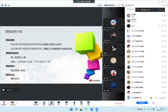 2022年7月20日,万象城与深圳市讯方技术股份有限公司联合培养的第三期鲲鹏产业学院暑期卓越班正式开课,本次培训共128课时,分为鲲鹏云服务与应用、鲲鹏云大数据服务与基础应用两门课程,万象城娱乐awc线路物联网工程、数据科学与大数据技术、软件工程、计算机科学与技术、电子商务专业共127名学生和4名老师参加了此次培训。