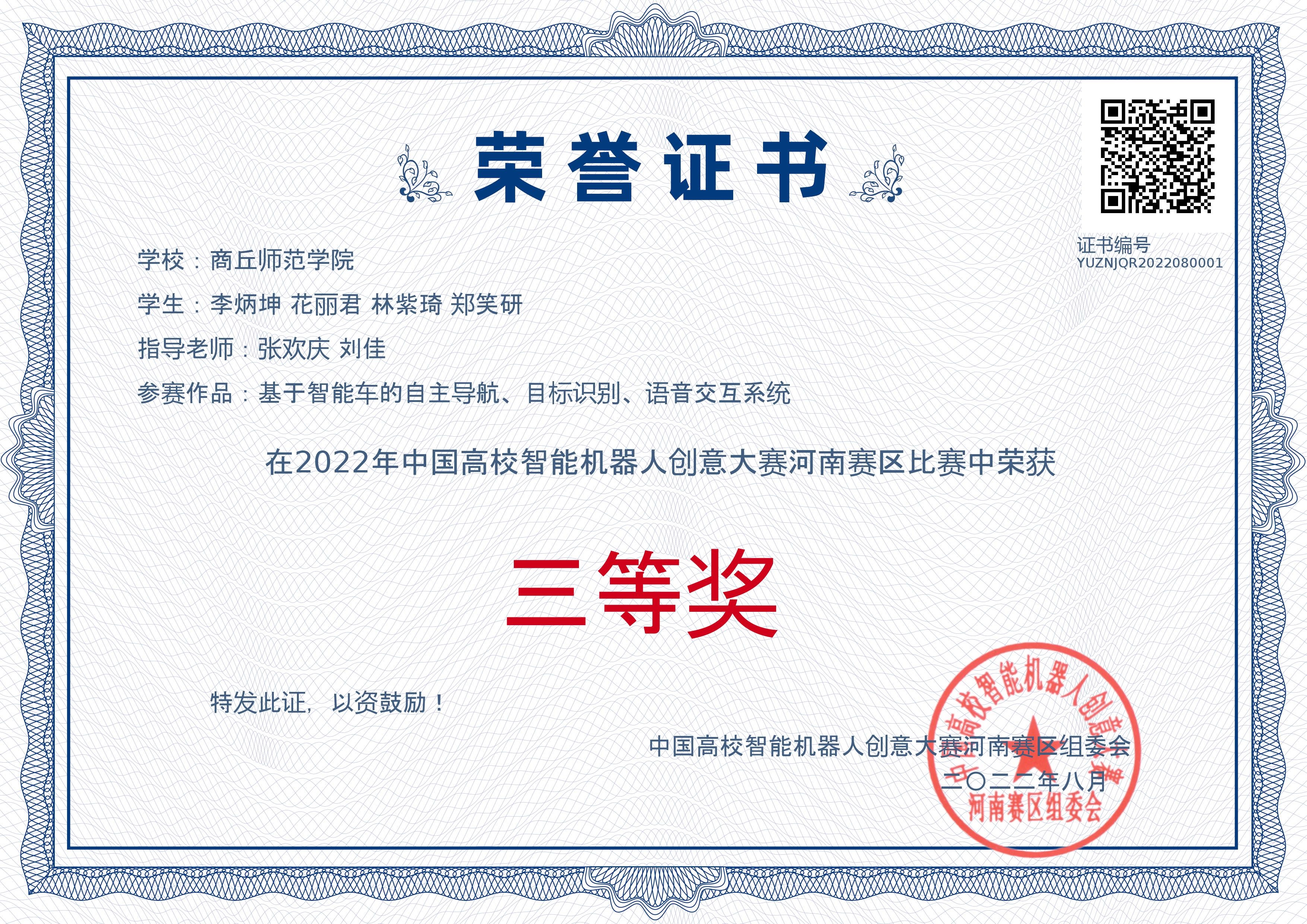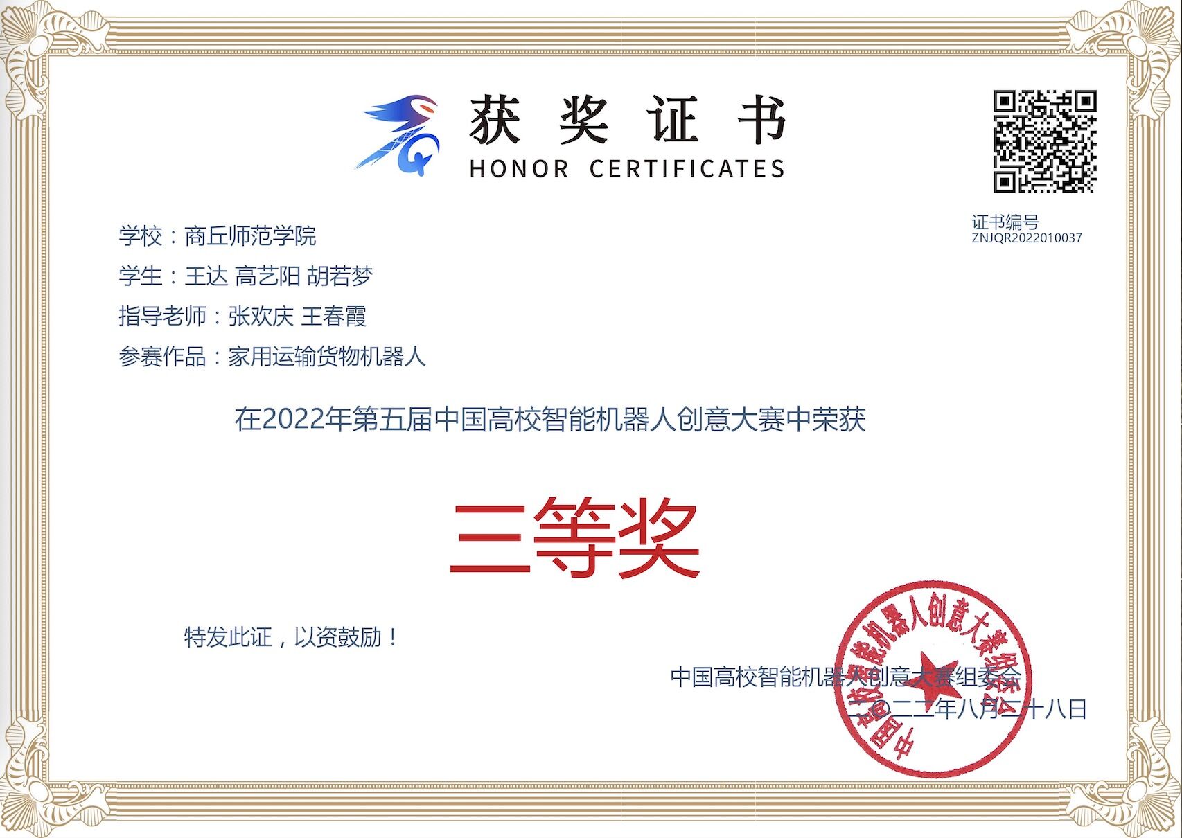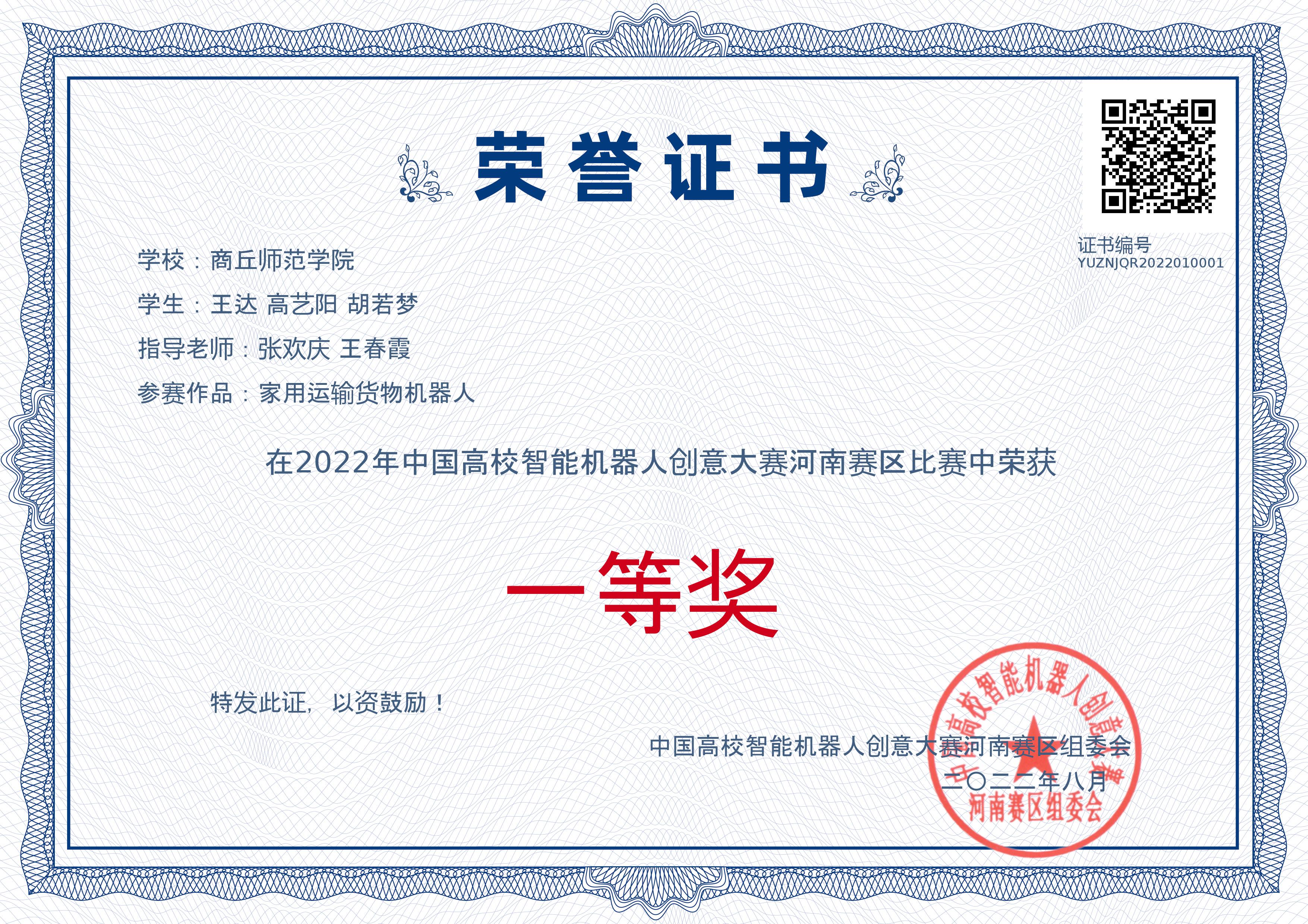 2022年8月,由首届大赛由中国高等教育学会、教育部工程图学课程教学指导委员会、中国高校智能机器人创意大赛组委会共同主办的第五届中国高校智能机器人创意大赛的获奖名单揭幕,万象城娱乐awc线路王达等三名学生荣获省赛一等奖、国赛三等奖; 李炳坤等四名学生荣获省赛三等奖。