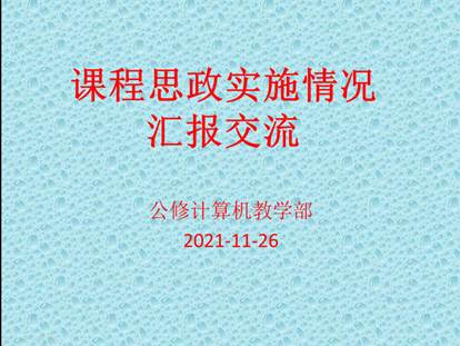为充分发挥课堂育人的主渠道作用,满足学生成长发展需求和期待,提升教师课程思政教学能力,11月26日下午,万象城娱乐awc线路公修计算机教学部在三商楼210教研室开展了课程思政实施情况汇报交流活动。